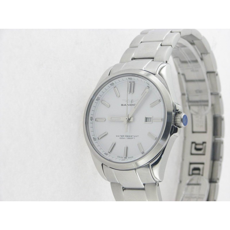 Reloj SANDOZ mujer, quarzo, agujas, calendari,caja y armys de acero con esfera en blanco, cristal de zafiro. Fabricado en Suiza