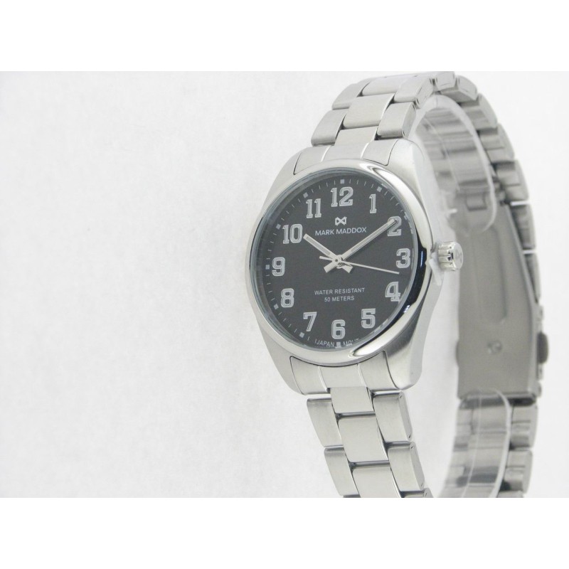 Reloj MARK MADDOX mujer, quarzo, agujas, caja y armys de acero con esfera en negro y nºs en blanco/plateado