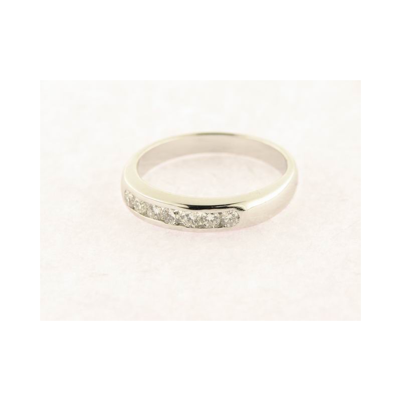 Anillo en oro blanco 18 kts con rodio ,con 7 diamantes talla brillante HVS 0,35 cts al nº14