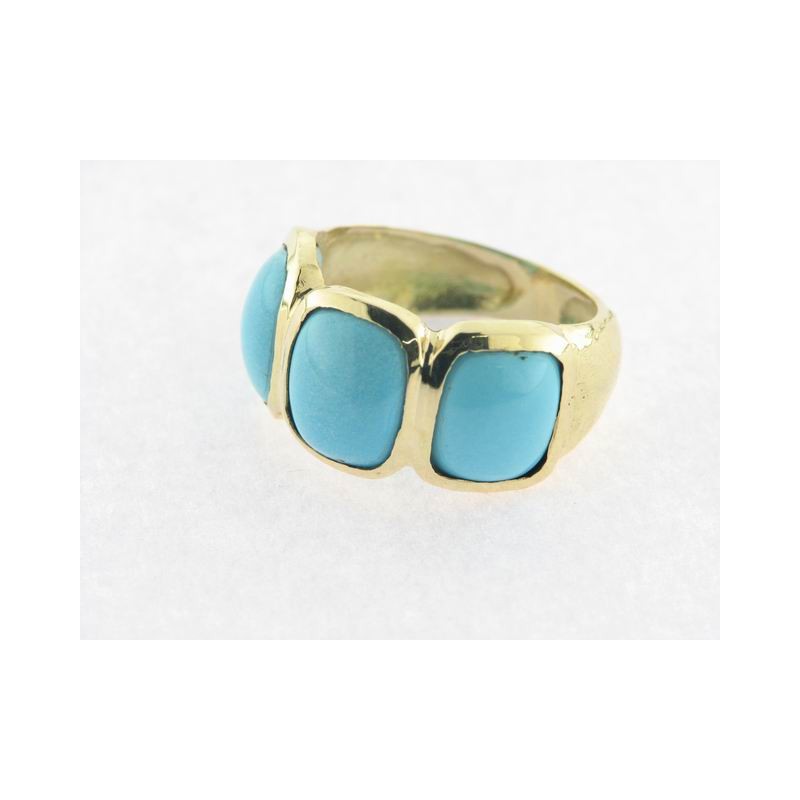 Anillo en oro amarillo 18 kts con 3 piedras turquesa al nº14