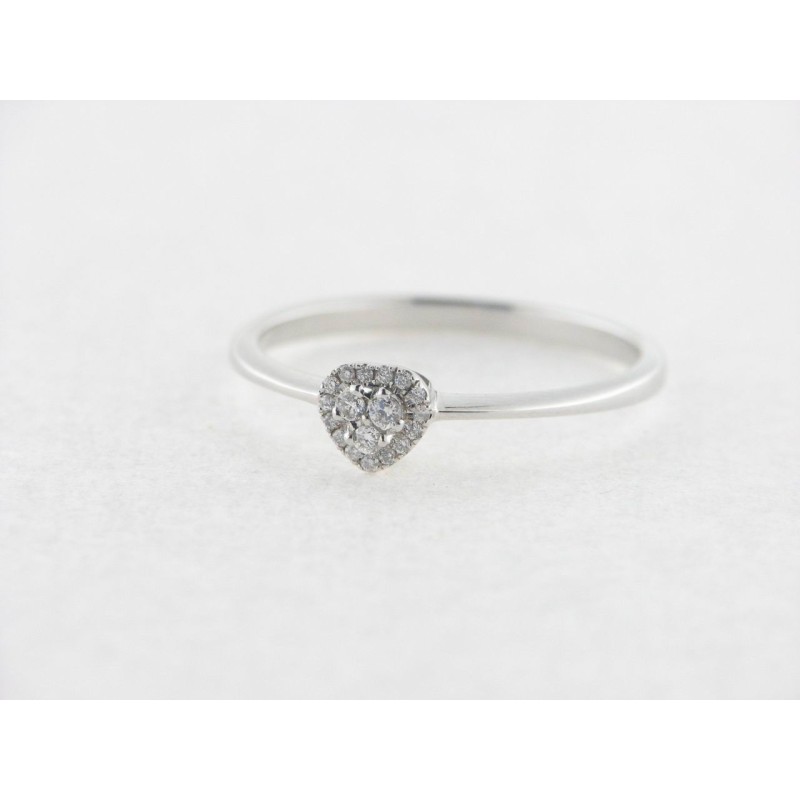 Anillo en oro blanco 18 kts con corazón, diamantes blancos talla brillante de 0,08 cts, al nº 14