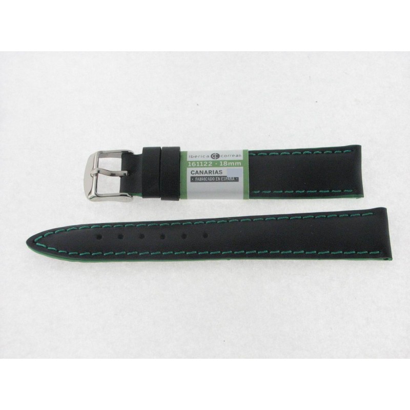 Correa de piel becerro negro hilo verde, ancho 18 mm