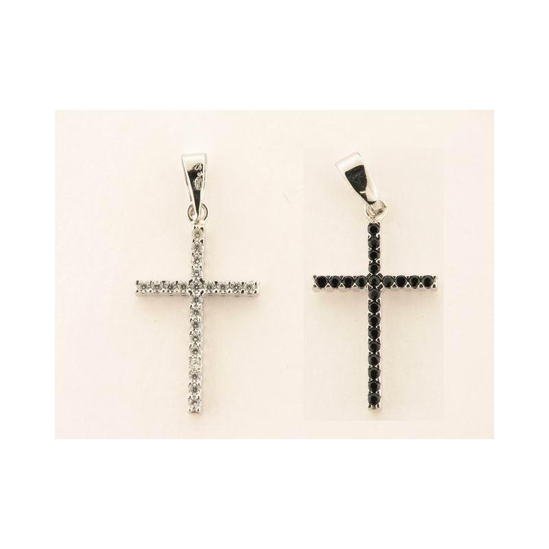 cruz de oro blanco con circonitas,reversible, y piedras negras, largo aprox. con anilla 2,6 cm y ancho 1,2 cm