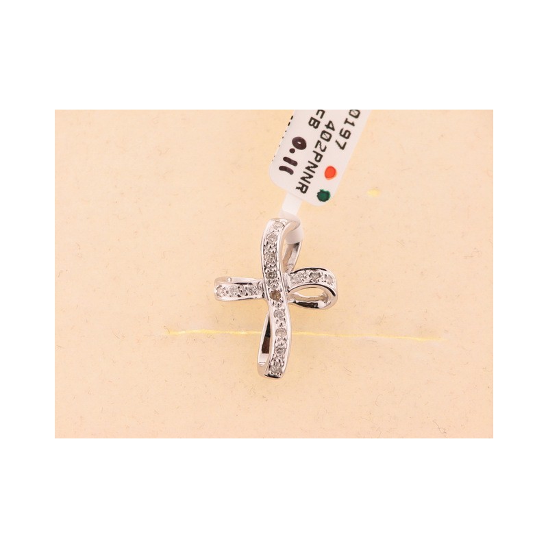 Cruz oro blanco 18 kts con diamante talla brillante 0,11 cts tamaño 18x13 mm