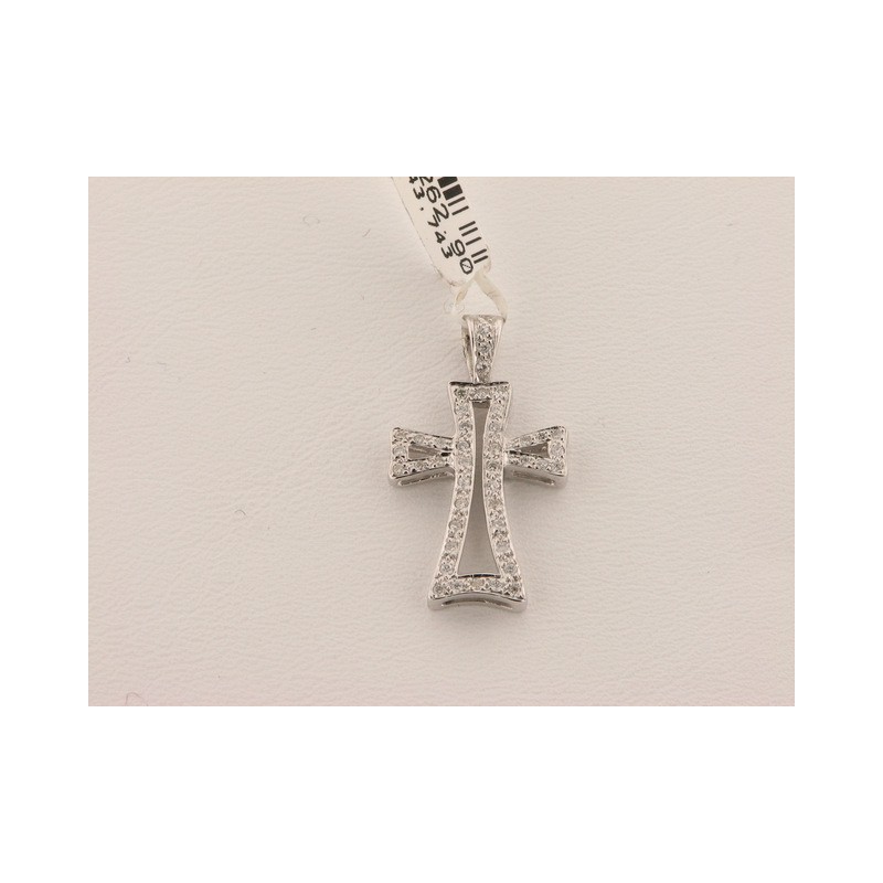 Cruz oro blanco 18 kts con diamantes talla brillante 0,18 cts tamaño 23x13 mm