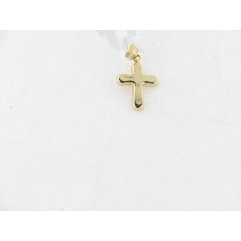 Cruz en oro amarillo 18 kts, lisa, tamaño 14 x 10 mm