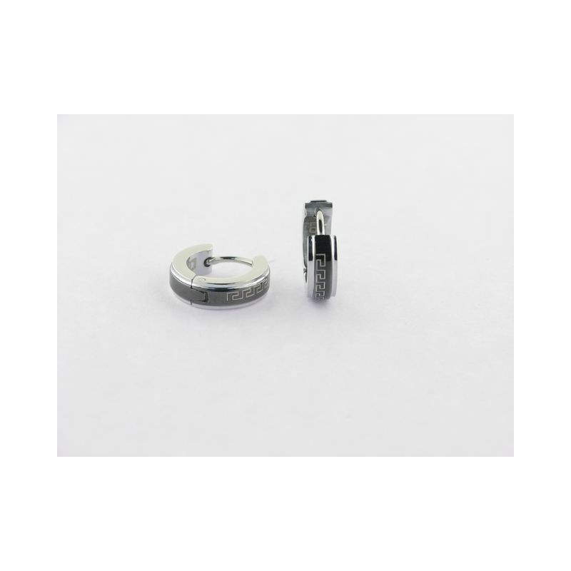 pendientes de aro LOTUS STYLE en acero con parte central en negro y con dibujo diámetro aprox. 1,3 cm ancho aprox. 0,4 cm