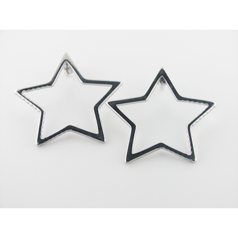 Pendientes de colgar en acero, forma de estrella, tuerca presión. Tamaño 42 mm