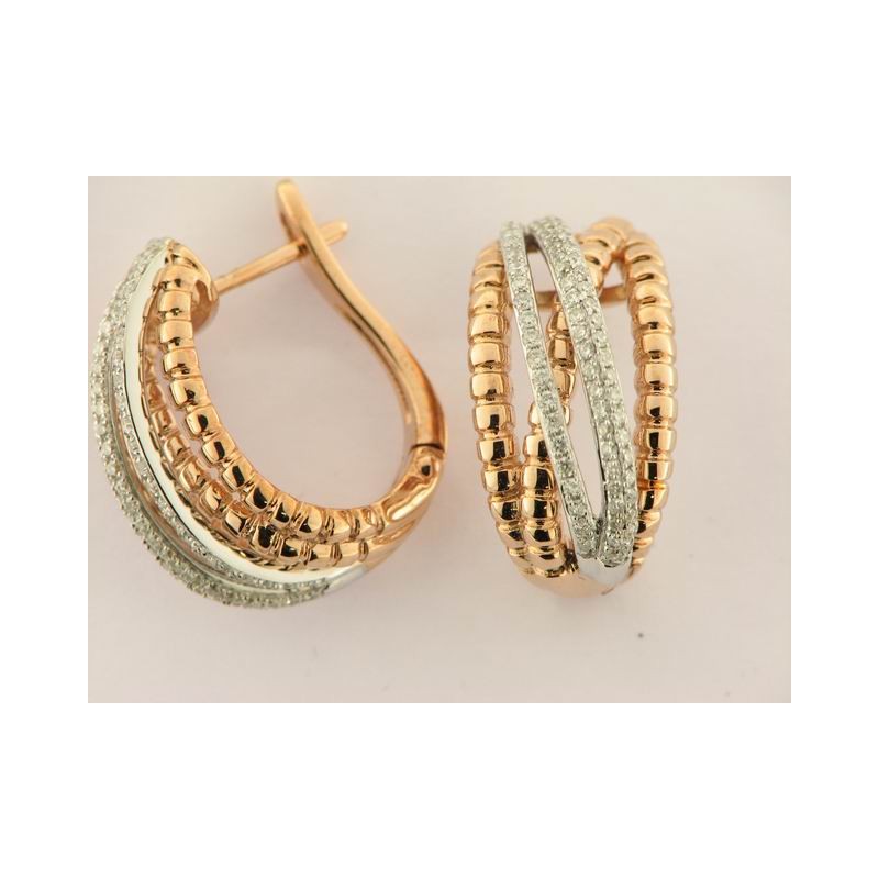 Pendientes oro rojo y blanco 18 kts con diamantes talla brillante 0,46 cts cierre catalan, tamaño 18 x10 mm