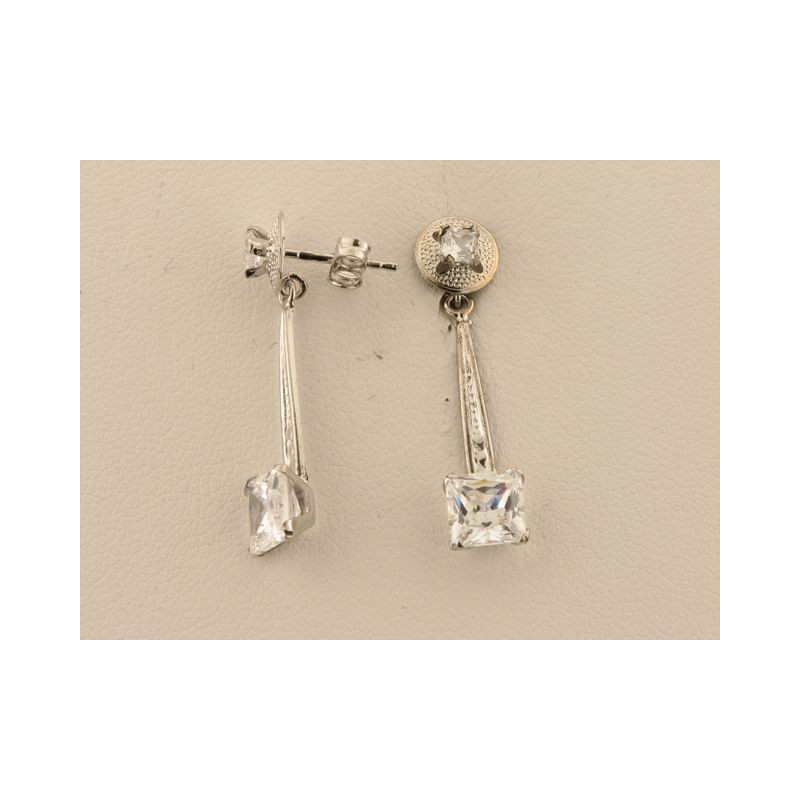 Pendientes en oro blanco 18 kts con piedras zirconitas,con tuercas de presión largo 30 mm