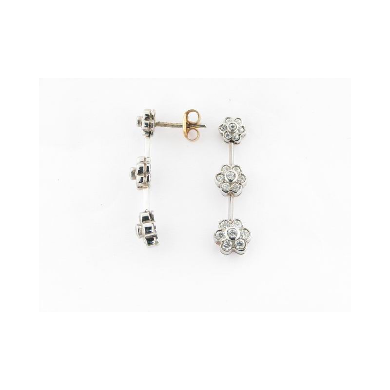 Pendientes oro blanco 18 kts con rodio piedras zirconitas, largo aprox. 32 mm con tuercas de presión