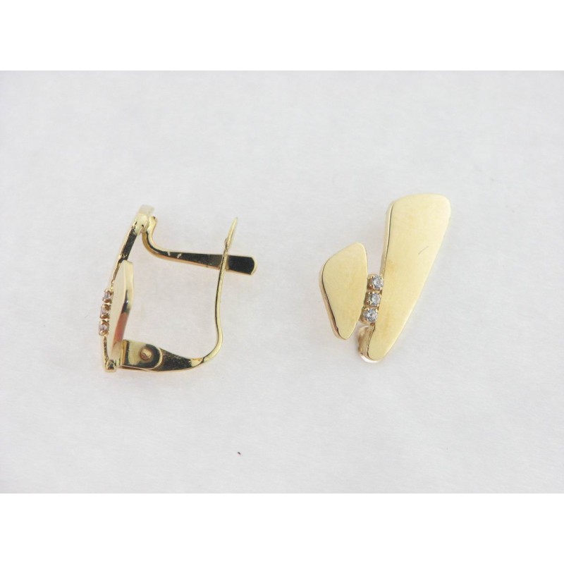 Pendientes en oro amarillo 18 kts con piedras, cierre catalan. Tamaño 14 x 9 mm