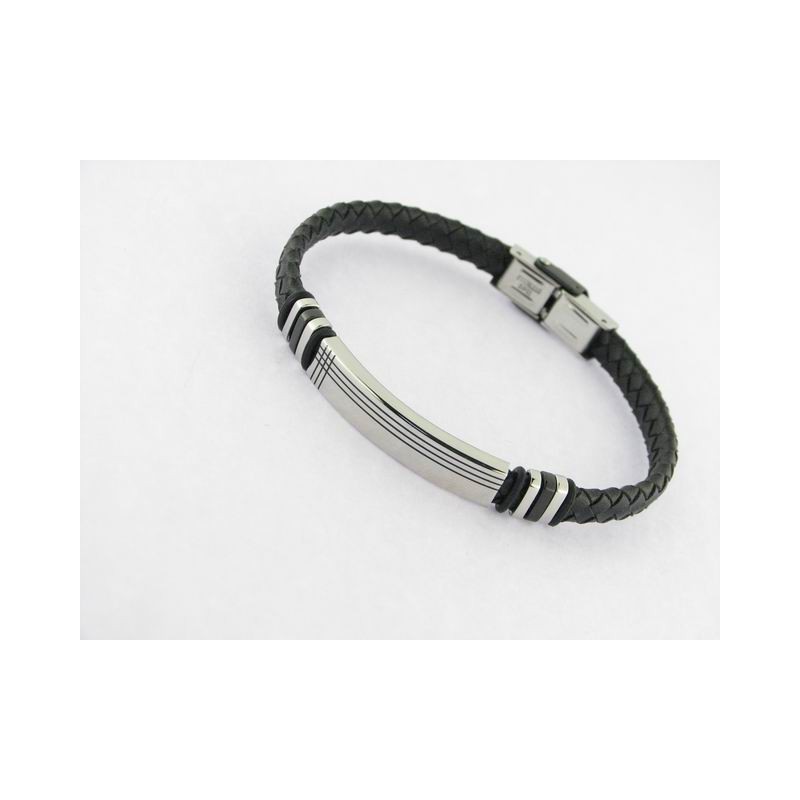 pulsera VICEROY FASHION en cuero negro con detalle central y cierre en acero largo aprox. 21 cm
