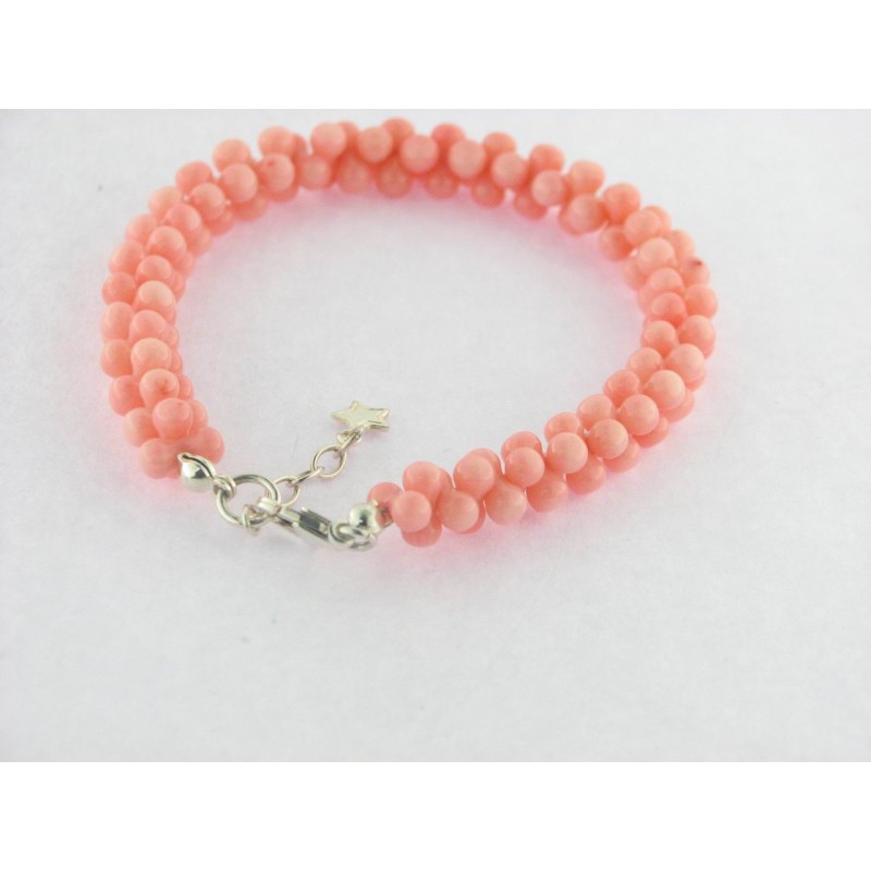 Pulsera con coral rosa y plata