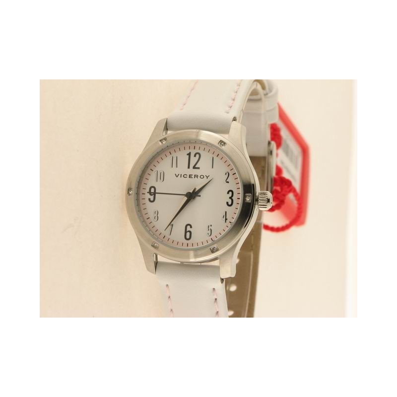 Viceroy agujas, quarzo, acero, esfera blanca correa blanca